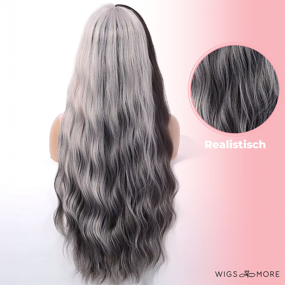Ondanks het contrasterende kleurenspel ziet deze pruik er verrassend natuurlijk uit. De lokken voelen zacht aan en hebben een subtiele glans die elke beweging laat opvallen – alsof je zo uit een fantasyfilm bent gestapt.